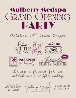 Event from 2 PM - 8 PM Mulberry Medspa Members: FREE